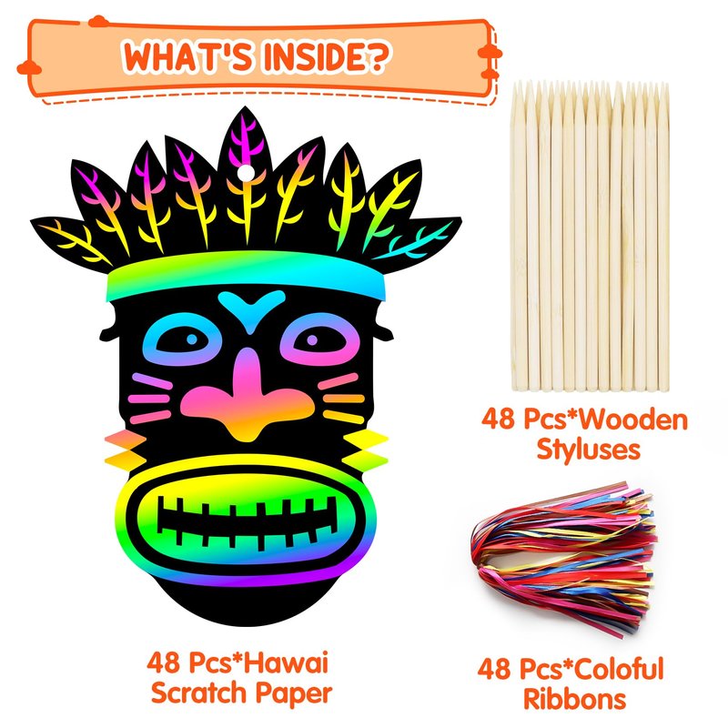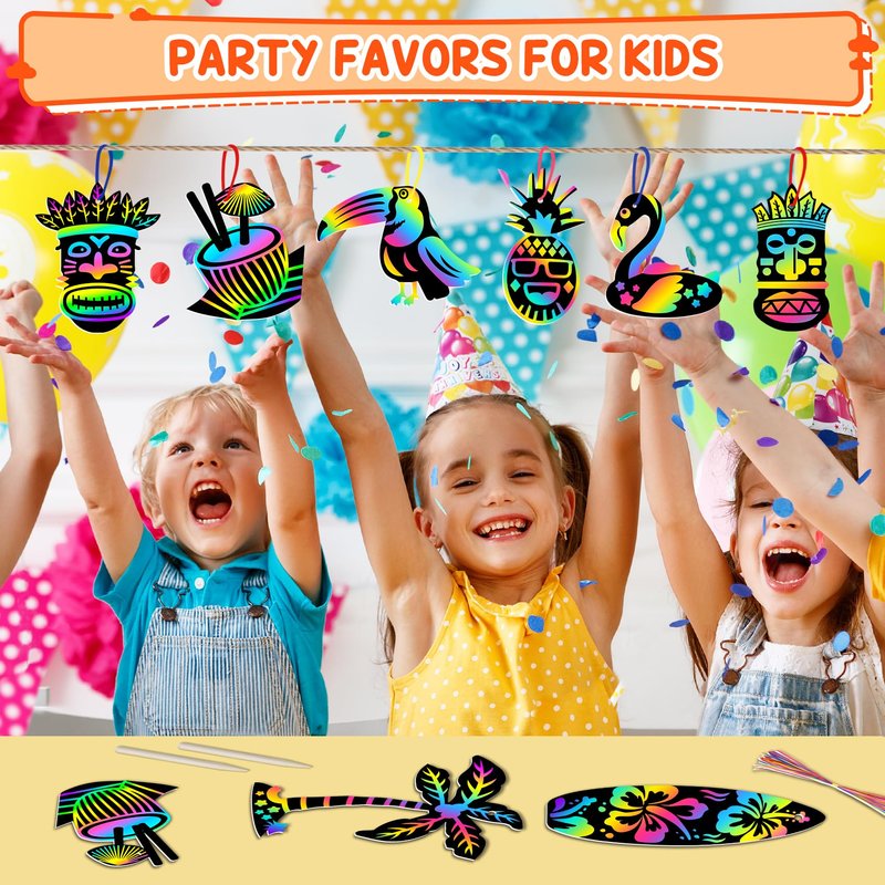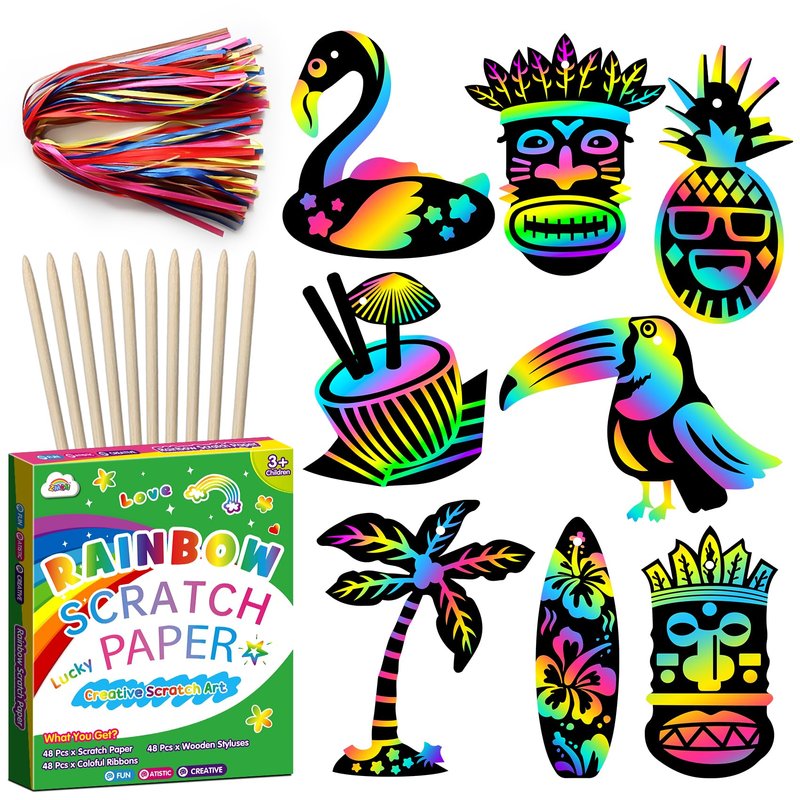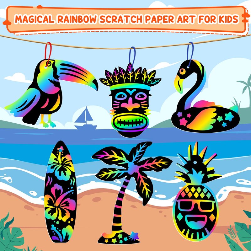 ZMLM Scratch Art Paper Kids - 48 Pcs 8 Style Hawaiian Party Rainbow Art Craft Scratch Paper for Party Favor Game Supplies Decoration Halloween Christmas Birthday Gift for Ages 4 5 6 7 8+ Girls Boys