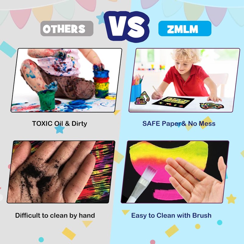 - Soft Brush: Special Scratch Gifts for Easily Clean - The brush of this scratch paper crafts solve the problem to sweep black surface matte without kids hands directly. Make children's work more tidy, make them more satisfied and happy. We are always willing to do more for you