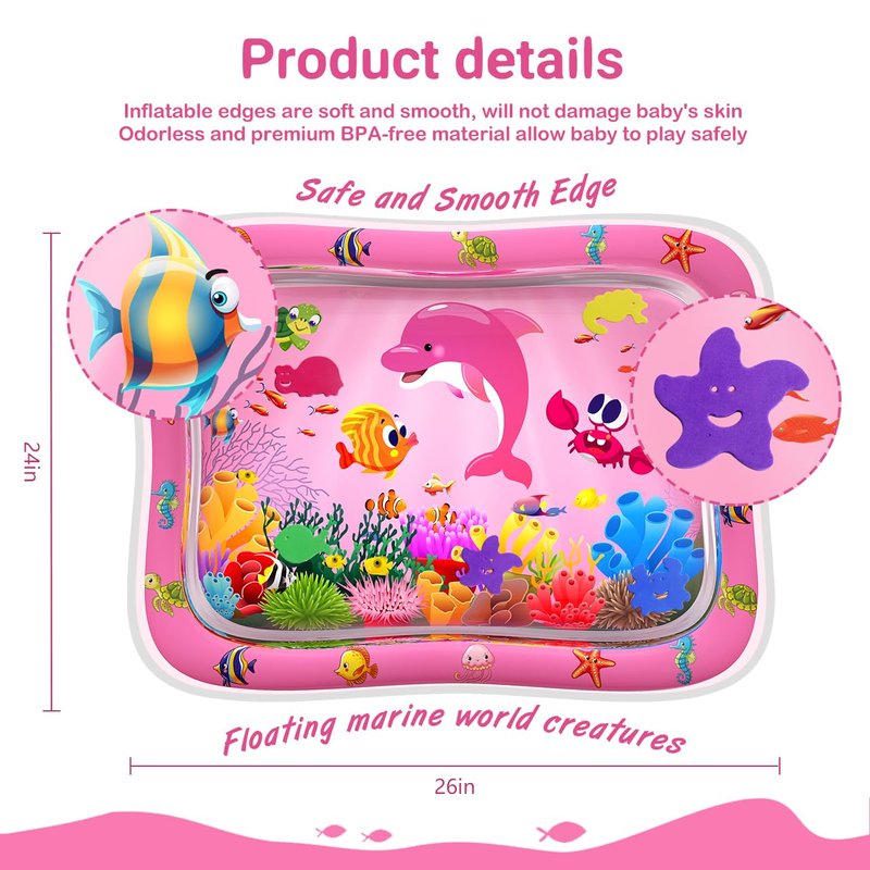 - Supreme Quality & 100% Leak Proof: Our tummy time mat inner pad adopts advanced inkjet technology will not fade; the durable 100% BPA-free material allows baby to play safely. Smooth and soft finely polished round edge is complete leak-proof without getting wet. Perfect baby gift toys for infants and toddlers 3 to 12 months on holiday,Valentines day gifts Easter birthday gifts.