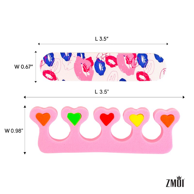 ZMOI 6 Pieces Colorful Girly Mini Emery Nail Files + 6 Pairs Heart Design Toe Separators Manicure/Pedicure Kit Kid Spa Party (Pack of 1)