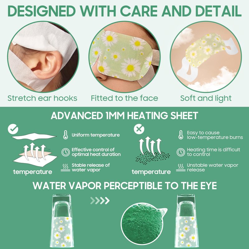 - 【SKIN CARE】 Not only do Steam Eye Masks revive tired eyes, they also improve the health of the skin around the eyes. The heat and steam help to hydrate the skin, reduce puffiness and dark circles, and promote a healthy complexion.
