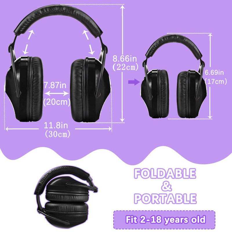 Superior Comfort: Our earpads are crafted with an extra-thick cushioning material, ensuring a snug and cozy fit for even the most sensitive ears. Kids can wear them for hours without feeling any discomfort. No Metal Components: Unlike traditional earmuffs, our design is completely devoid of metal parts. This means no worries about allergic reactions or discomfort caused by metal contacts, making it a perfect choice for children with sensitive skin. Excellent Noise Reduction: Despite the soft and comfortable design, our earmuffs provide exceptional noise reduction capabilities, protecting your child's ears from loud and harmful sounds. Fun & Stylish: Available in a range of vibrant colors and designs, our earmuffs are sure to become your child's favorite accessory, whether they're playing outdoors, attending concerts, or engaging in other noisy activities. Easy to Use: The adjustable headband allows for a perfect fit, ensuring maximum comfort and noise reduction for all head sizes. Plus, the soft and flexible material makes it easy to put on and take off, even for small hands. Protect your child's hearing without compromising on comfort and style. Give your child the best possible protection from loud noises!