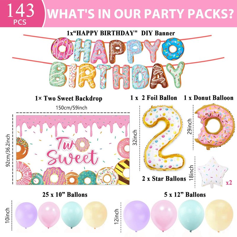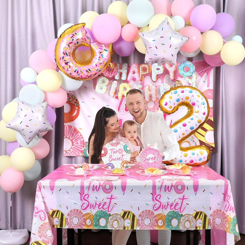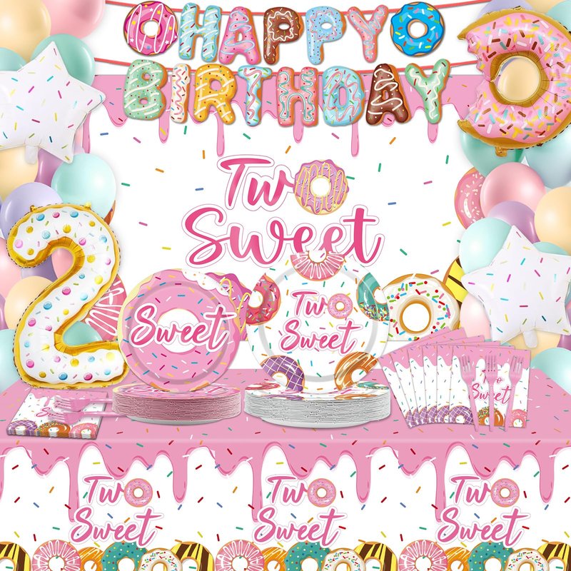 - Adorable "two sweet" theme: Our two sweet birthday party decorations for girls are designed with vibrant colors and sweet donut patterns, these decorations will create a festive atmosphere that your guests will love. Celebrate the 2nd birthday in style with this charming "Two Sweet" party decorations set, designed to add a touch of sweetness and joy to the celebration.