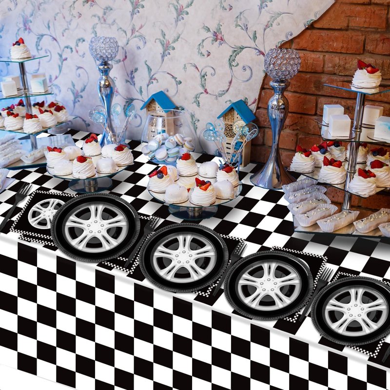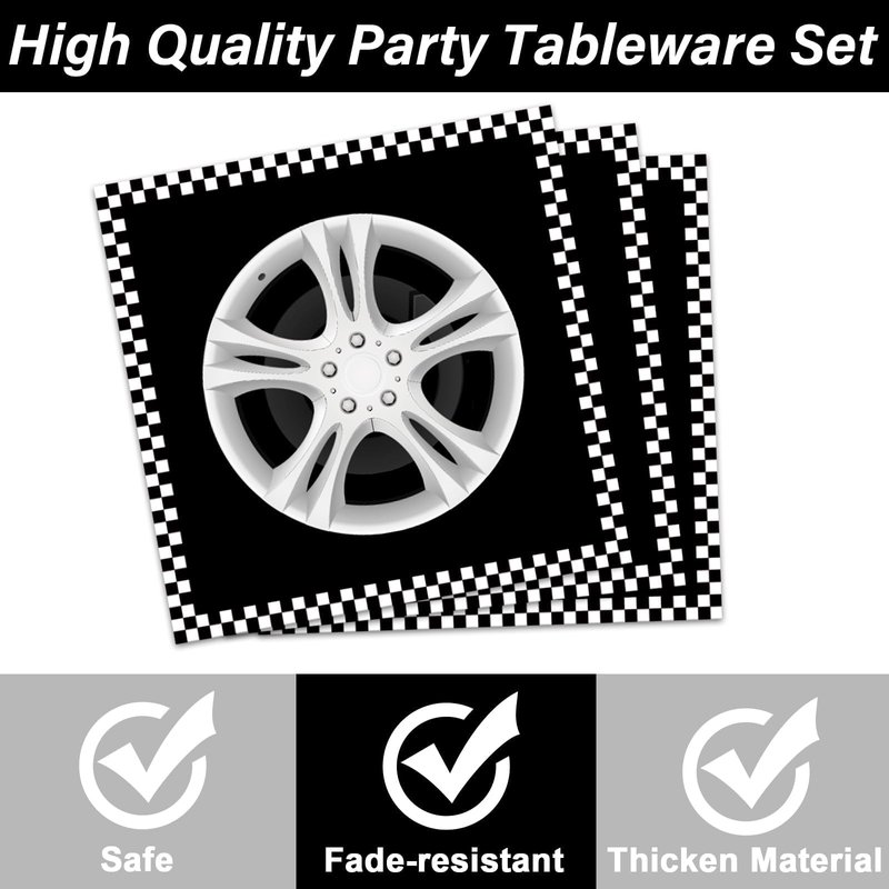 - Convenient: these easy race car party kits are the perfect addition to your party decorations. these race car paper plates and napkins are disposable after use, saving you time in cleaning up. perfect for race car checkered parties.