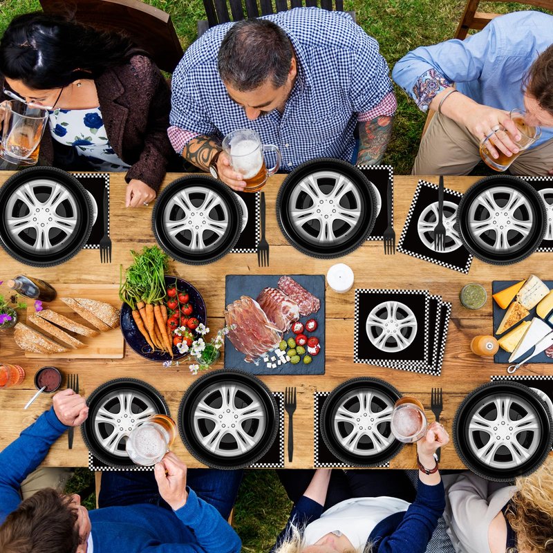 - Perfect Racing Car party addition: These beautiful Racing Car themed party packs are the perfect addition to your Tire Tubes checkered themed party decorations. They can be perfectly matched with your other Tire Tubes checkered party decorations such as Tire Tubes checkered party tablecloths, Tire Tubes checkered party banners, Tire Tubes checkered party bags, Tire Tubes checkered party backgrounds.