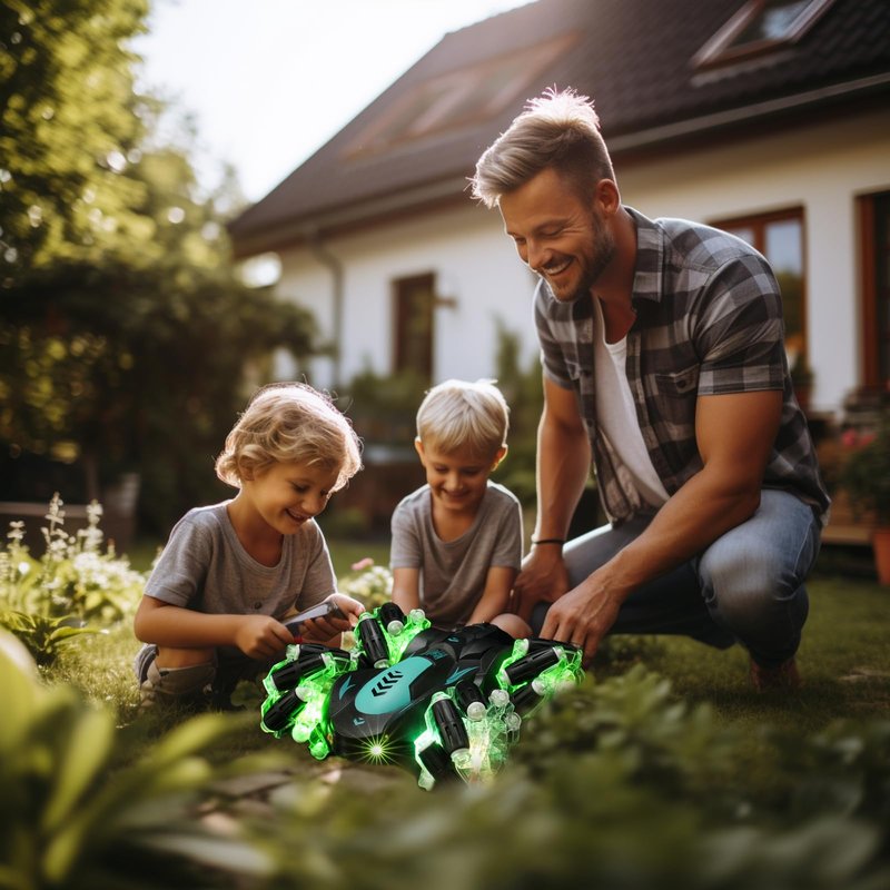 - 【Full Directional Stunt Master Car】 Stunt master car with full directional wheels can walk sideways, left &right side by side moving, diagonal drifting,double sided moving, rotate 360 degrees. Boys,girls&adults can play gesture rc car day or night with the cool LED lights,It will be a very fun thing
