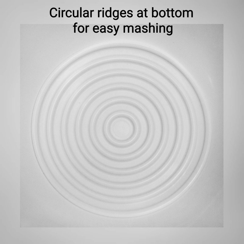 - Radiating circular ridges for easy mashing right in the bowl