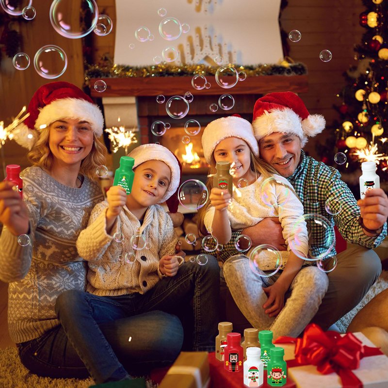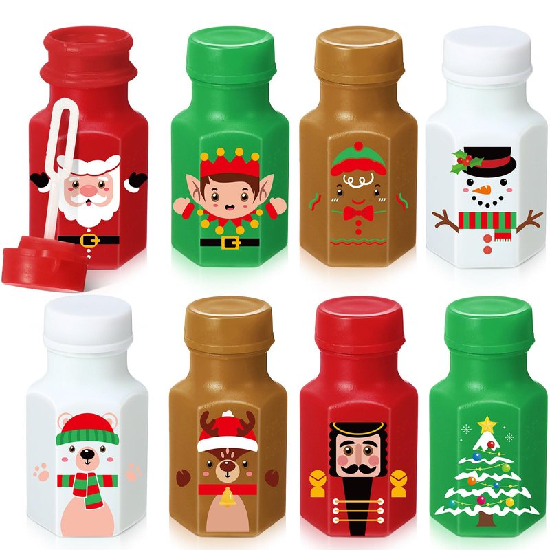 - Quality Material: these Christmas party favors are made of reliable plastic and safe soap solution, which are safe to kids' skin and face, can play with confidence; Just wave a bubble wand to blow out rich bubbles. Do not Drink