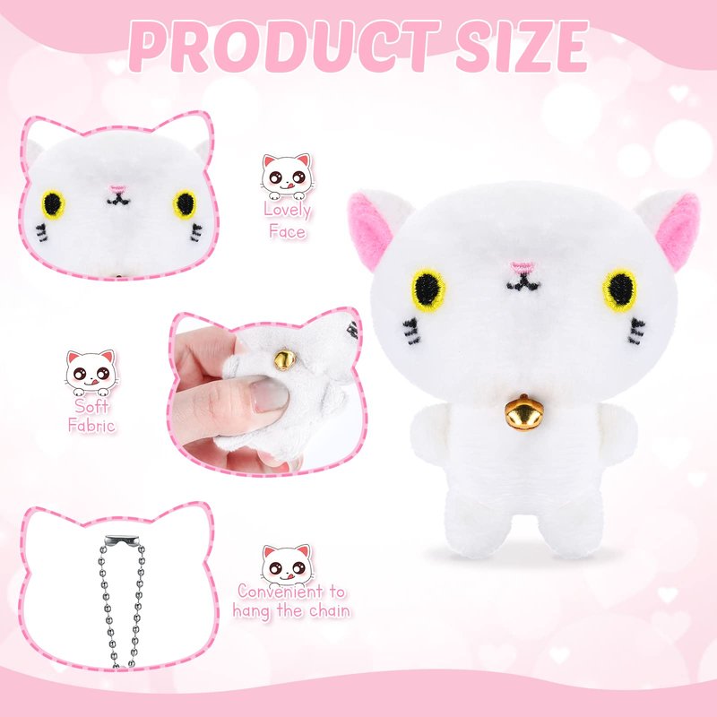 - Intimate Companion: the height of each tiny stuffed kitten is proper, exquisite and compact, and you can slide it directly into a pocket or pouch for easy portability; Moreover, the short top cord also helps you hang it on belt loops, backpacks, handbags, keychains, wallets, pencil cases or other places you want