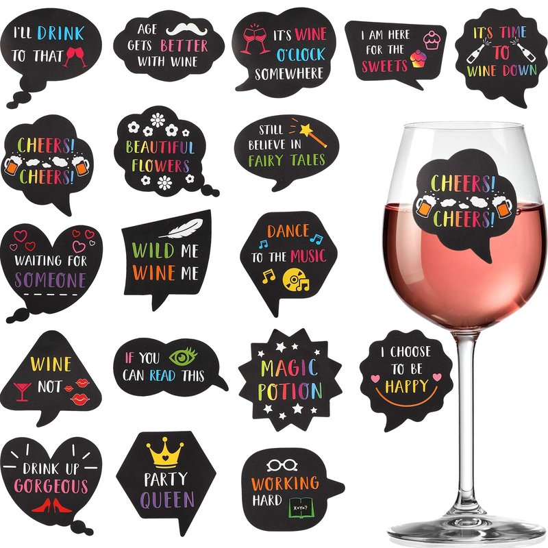 - A great gift choice: these funny wine glass stickers are good choices as housewarming gifts, wine tasting party favors and wine charms to make your party more attractive and stylish; Stick them on the wine bottle or wine glass on the Valentine's Day party will add a romantic touch for your lover