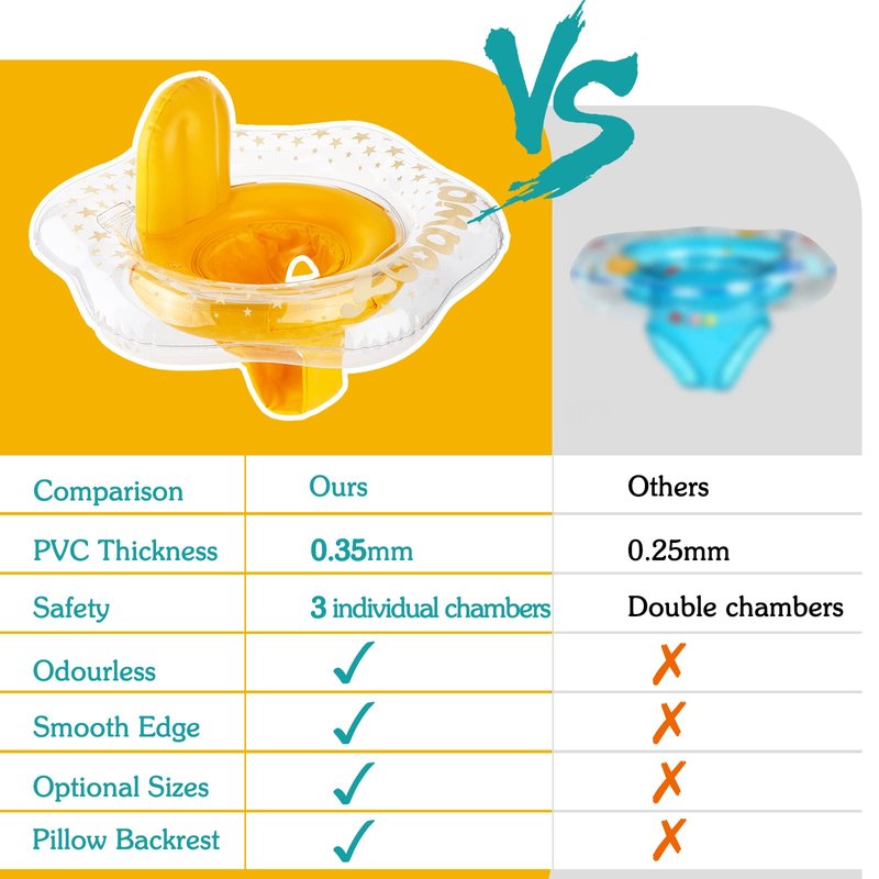 --Its dual inflatable chambers and pillow backrest protect the baby's belly and deliver extra stability and avoid forward overturning, flipping over, or sliding out, safety is always the first.