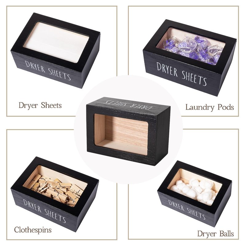 - SPACE-SAVING: Measures 7.3" L × 5" W × 3.6" H, comfortably fit a whole big box of 200 dryer sheets. This dryer sheets makes your laundry room look really nice and organized without, this laundry dryer sheet bin is a great alternative to cardboard dryer sheet product boxes.