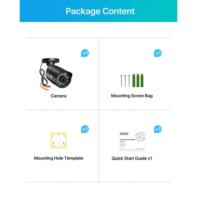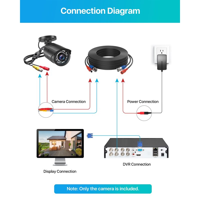 - (3). [ IP67 Metal Weatherproof ] __ Camera used high quality metal aluminum materials,3-Axis camera stand,cable through bracket for hassle free use in rainy or snowy days.(Camera Power Supply and Coaxial Video Cables are not included but they are required and sold separately.)