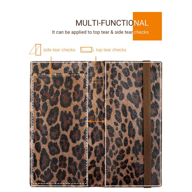 Zreal Checkbook Cover for Men & Women, Premium Vegan Leather Checkbook Holder Slim Wallets for Top & Side Tear Duplicate Checks with RFID Blocking (Dark Leopard)