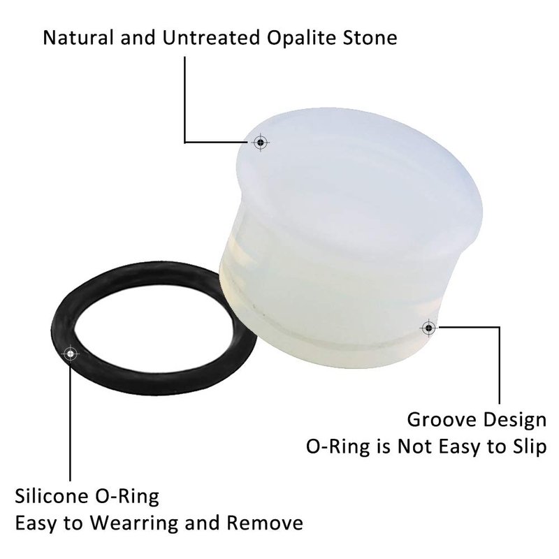- Style: Single flare Opalite stone with Silicone O-Ring, Fastening: Silicone O-Ring.