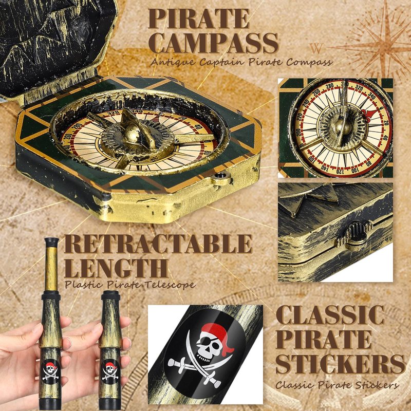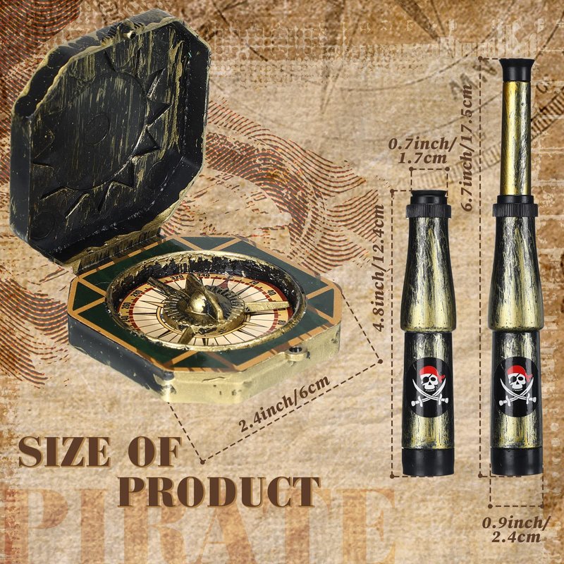 - Package Includes: you will receive a total of 12 pieces of pirate party decorations, including 6 pieces of telescope and 6 pieces of compass, which are ideal for treasure hunting party; Note: these telescope and compass are only as party props, don't have the function of a real telescope and compass
