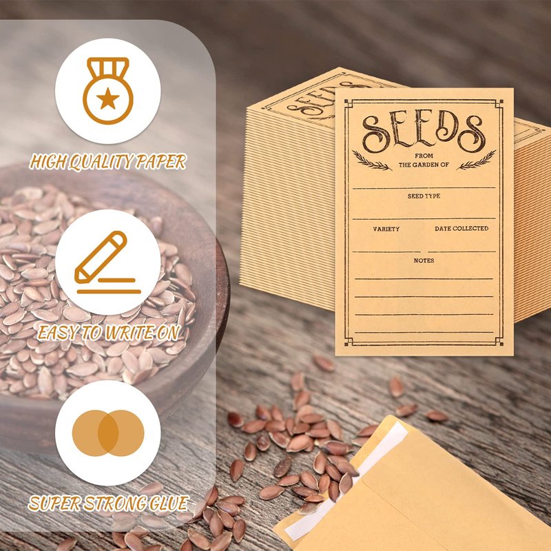 - Convenient Design: the seed saving envelopes feature in double sides adhesive design, so there is no need for other installation tools; And printed with 5 sections, including [FROM THE GARDEN OF], [SEED TYPE], [VARIETY], [DATE COLLECTED], and [NOTES], you can fill in the lines with key information