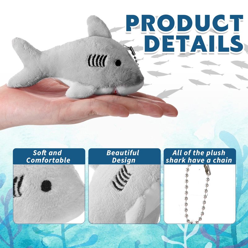 - Portable Size: each mini shark plush keychain is about 10 cm/ 3.94 inches in length, tiny and portable, which is convenient to carry; With a chain on the top of the mini shark figure, it can be clipped onto zipper pulls, key rings, handbags and more