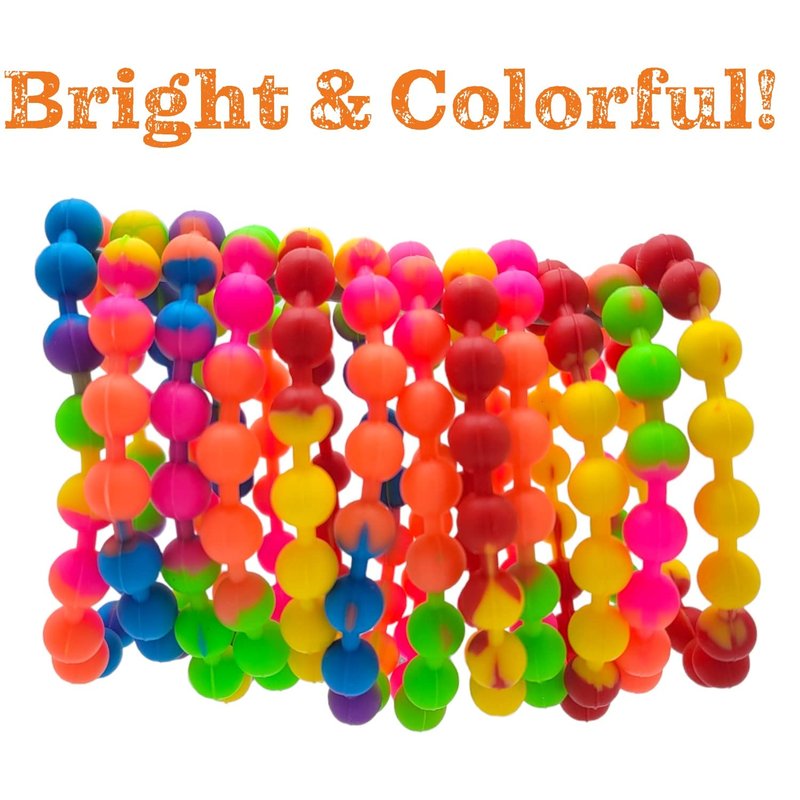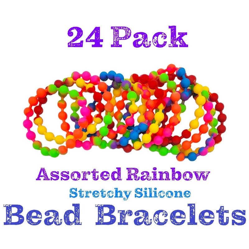 Awesome Looking Fashionable Assorted Rainbow Color Stretchy Silicone Bead Bracelets for entertaining your kids at their perfect fun day! Comes in packs of 12 and will be plenty to satisfy a few at the time!