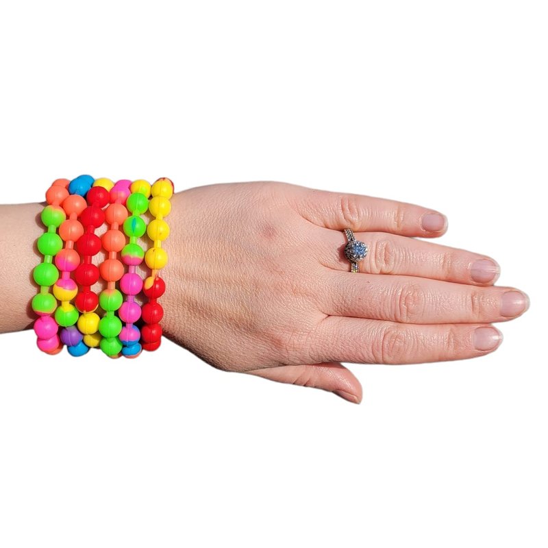 - Introducing our Colorful Rainbow Stretchy Rubber Bracelets! These bracelets are perfect for adding a pop of color to any outfit. Made from high-quality, stretchy rubber, they are comfortable to wear and won't slip off your wrist.