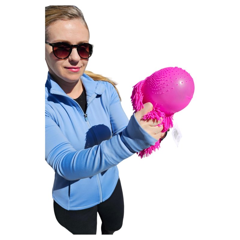 Zugar Land Soft Shaggy Puffer Dog Toy (1 Pink) (8" x 5") Filled with air for a Fun Squishy Stretchy Fidget Experience. Blue, Pink, White. (1 Pink)