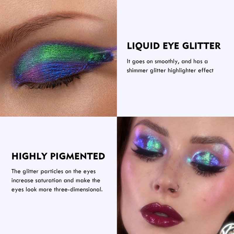 - Multi-Dimensional Color Shift: This chameleon liquid eyeshadow looks like only one color at first glance, but it appears different colors at different angles and under different light. It's like having multiple shadows in one, ensuring your eyes stand out in every setting;