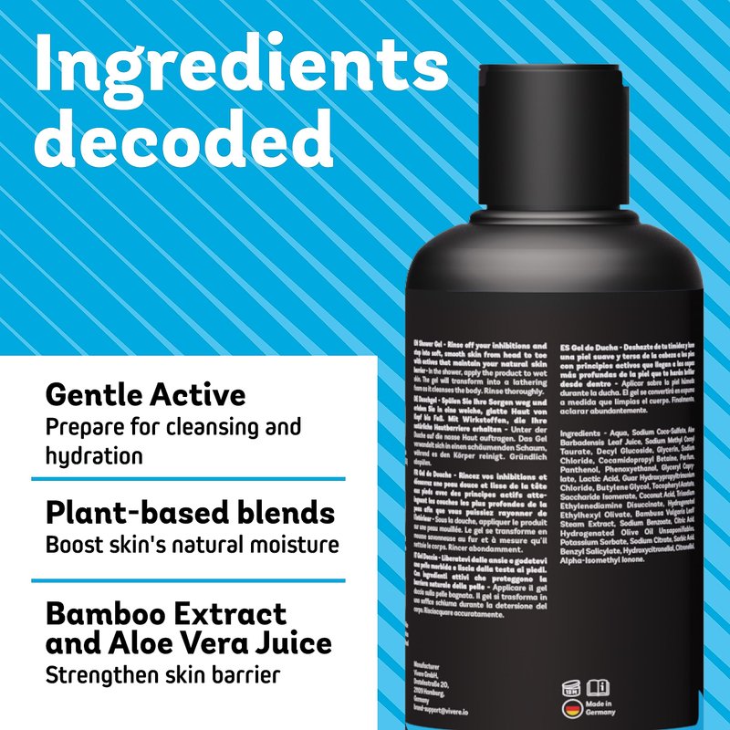 - Unlocking Its Secrets: Delve into the genius behind Shower Gel. Our shower gel for women & men has moisturizing properties. A refreshing formula: Aloe Vera Extract, Bamboo Extract & Panthenol. Our shower wash cleanses and refreshes your skin, leaving you feeling ready to go, with a refreshing scent that invigorates your senses.