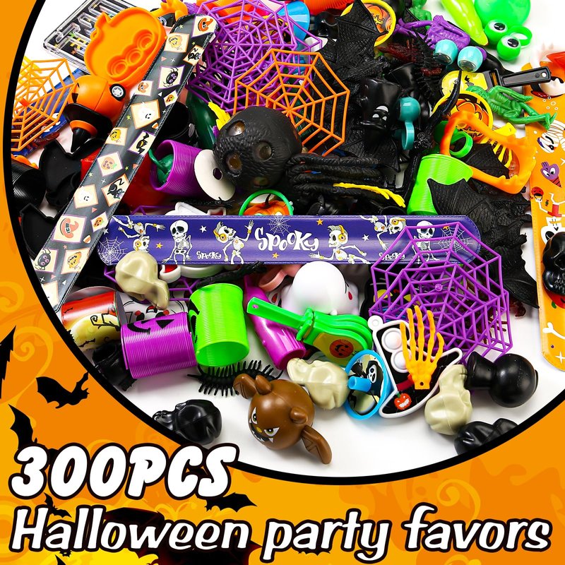 Zunaco 300PCS Halloween Party Favors for Kids, Trick or Treat Gifts Goodie Bag Fillers, Halloween Bulk Fidget Toys Party Supplies for School Classroom Carnival Prizes Treasure Box