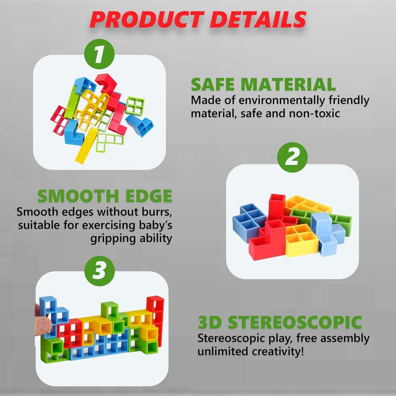 - SAFE AND DURABLE: The tetra stacking game is constructed from non-toxic, eco-friendly ABS materials, ensuring both safety and sustainability. Tetra tower game 48 pieces sturdy build ensures that the towers created during gameplay are stable and secure, adding to the excitement and challenge.