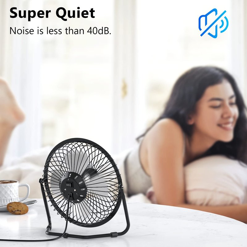 Zuvas Desk Fan Quiet Small USB Fan 360° Rotation Portable Table Fan 2 Speed Mini Personal Fan Air Cooling Electric Fan for Home Office Bedroom Travel Camping, 4 inch Black