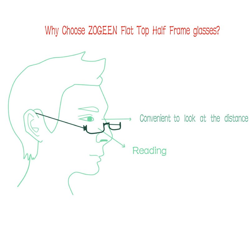 - BROADER VISION: ZUVGEES half-rim presbyopic glasses with top half frame being rimless allow you to look at distant objects without blocking the view; meanwhile, they are perfect for reading through the high-quality lenses.