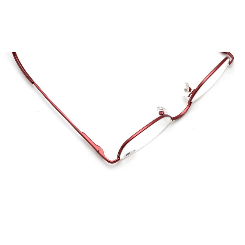 ZUVGEES Vintage Alloy Semi Rimless Reading Glasses Men Women Half Frame Slim Glasses with Stylish Case (Red, 2.50)