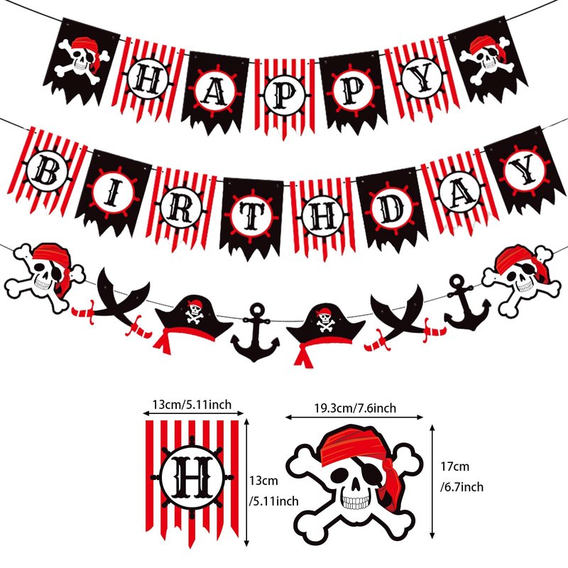 Zwiebeco Red Black White Happy Birthday Banner Pirate Bunting Garland Hanging Paper Halloween Pirate Themed Birthday Party Decoration Supplies