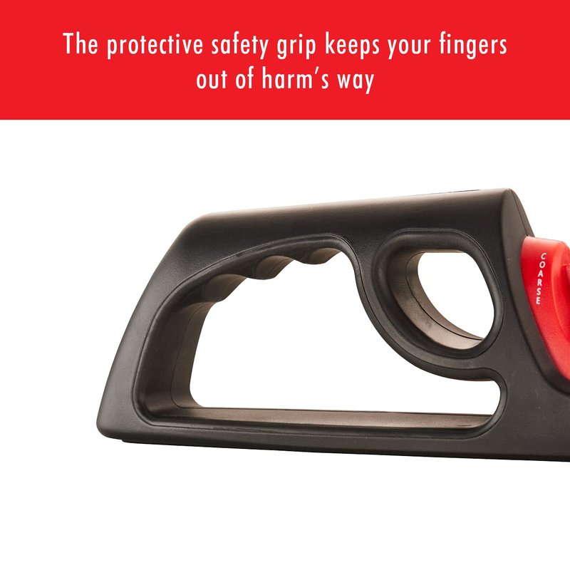 - SAFETY IS SECURED: The sharpener features a comfortable handle which also protects fingers and a non-slip bottom