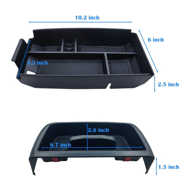 - đăCustomized DesignăCenter console storage tray perfectly matches the armrest case, the tray is equipped with non-slip rubber pads, the vehicle can reduce the noise when moving the items during the driving process, making the driving more comfortable.