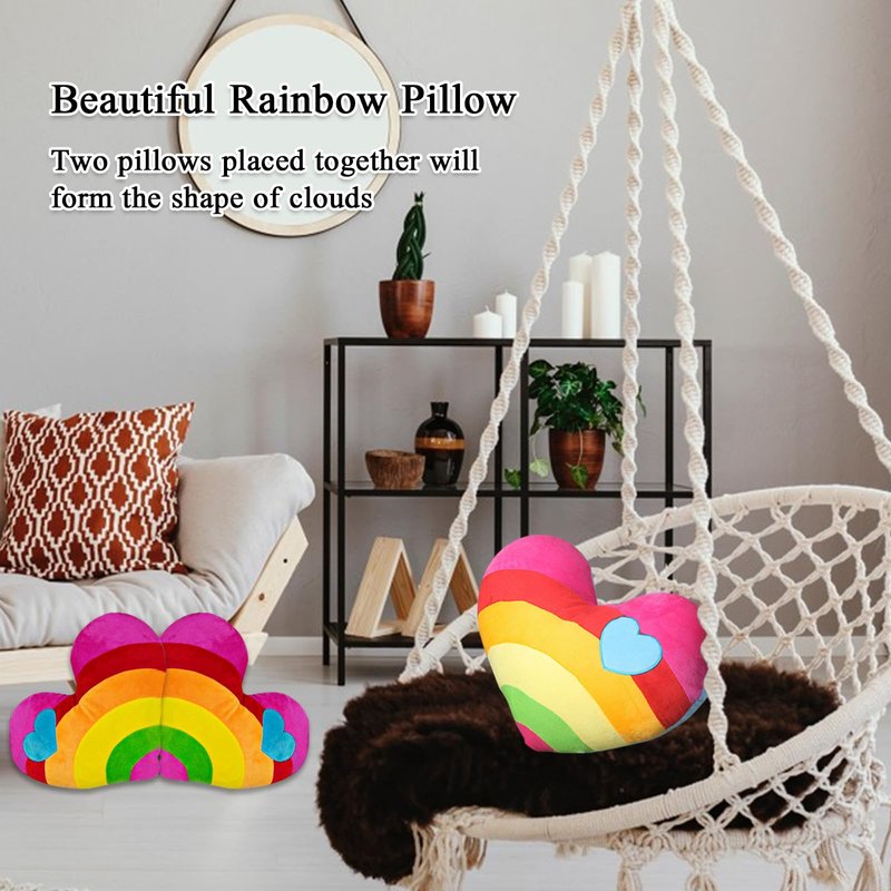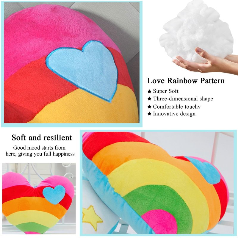 - [Soft Materials]-This stuffed rainbow heart shaped throw pillow plush Toy is made of the quality pp cotton and soft fillings, soft and comfortable to touch, suitable for snuggling and cuddling,which will bring you a cozy feeling and serve you for a long time