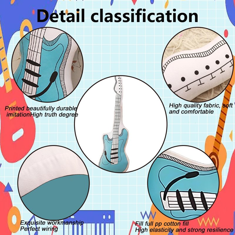 - WIDE APPLICATION RANG-Our guitar stuffed animal pillow plushie for musical lover can be applied to various occasions, such as birthday party gifts, themed party decorations, family sofa pillows, pillows, seat cushions, etc. The vivid and attractive design creates a visual effect that enriches your party atmosphere!