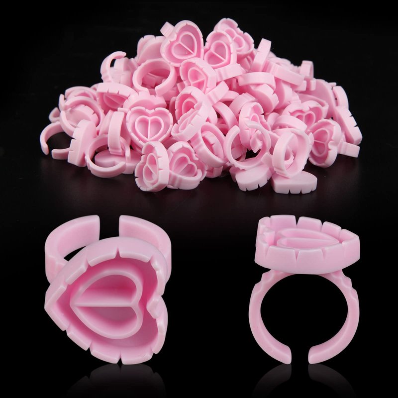 ZXMFDZ 100PCS Glue Rings Lash Rings for Glue Glue Rings for Eyelash Extensions Eyelash Glue Holder Lash Glue Rings Smart Glue Cups Pink