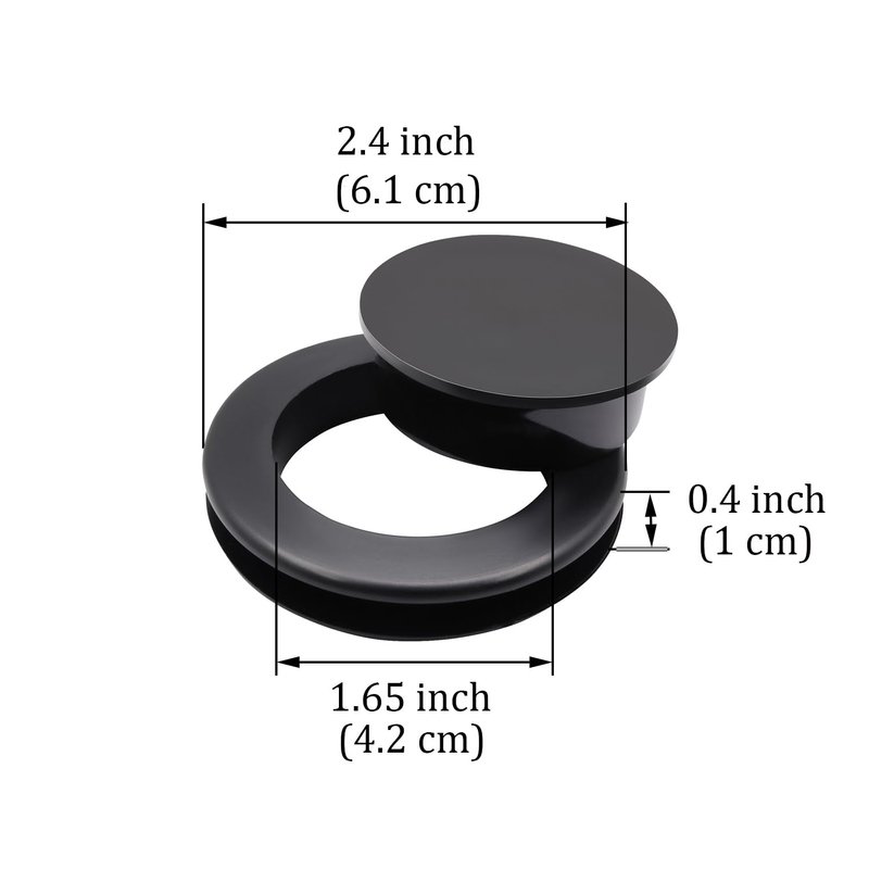 - Standard size: Outer diameter:6.1cm/ 2.4inch. inside diameter:4.2cm/1.65inch. thickness:1 cm/0.4inch.; fit for 5 - 6 mm thickness tempered glass and tabletop of which hole diameter is 2 inches.
