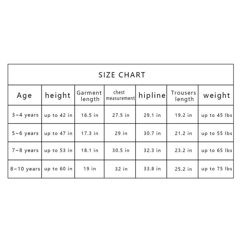 - 【Size】:There are four sizes: 3-4 years old, 5-6 years old, 7-8 years old and 8-10 years old. Please check our size chart carefully to choose a more comfortable size for your child. If your size is between two sizes, it is recommended that you choose a larger size. If you have any problems, you can contact us by email, and we will give you a satisfactory solution.