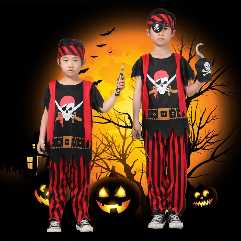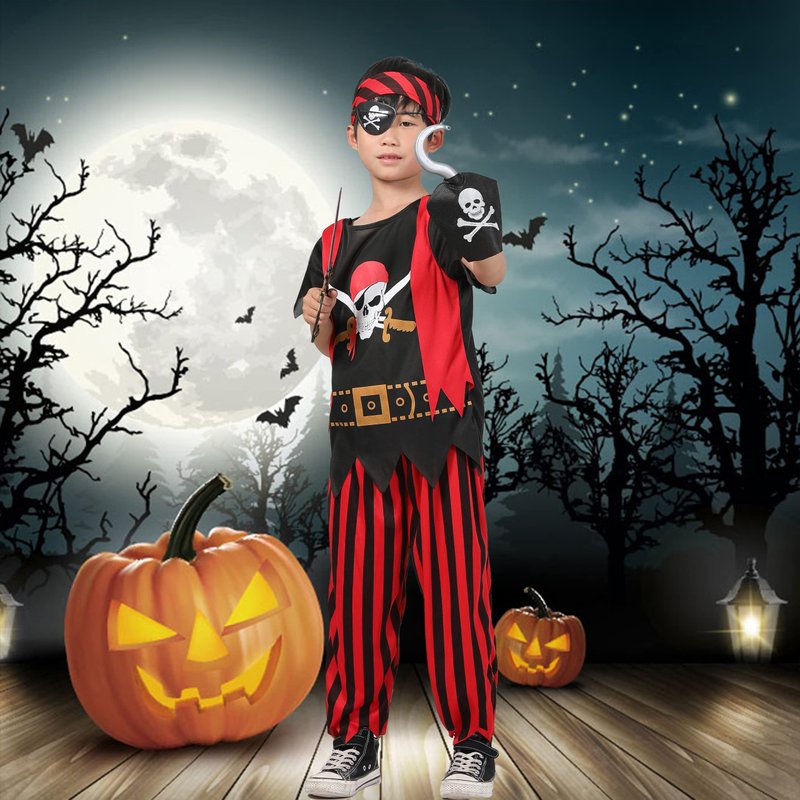 - 【Pirates of the Caribbean suit includes】:There are six gold coins in pirate jacket, pants, headscarf, pirate eye mask, compass, pirate hook, pirate machete, pirate telescope and pirate purse. Such realistic scenes can make your child become a real adventurer and imagine exploring the unknown world.