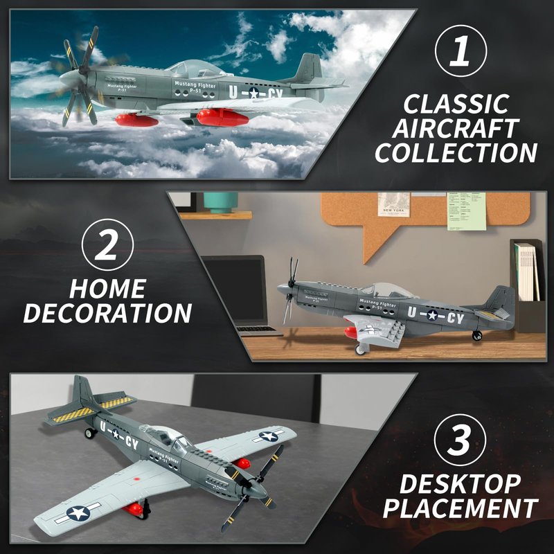 - 【Perfect Replica】 The ZYLEGEN P-51 Fighter Aircraft building block set perfectly replicates the details of the P-51 Mustang, allowing you to explore the world of aviation and create a unique military experience. Ideal for enthusiasts who love exploring and building iconic aircraft