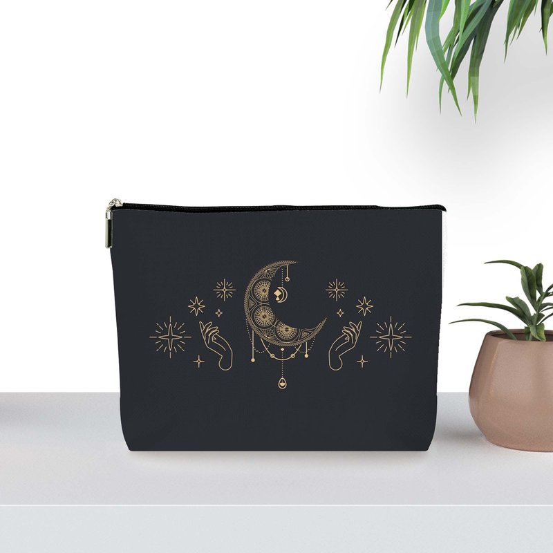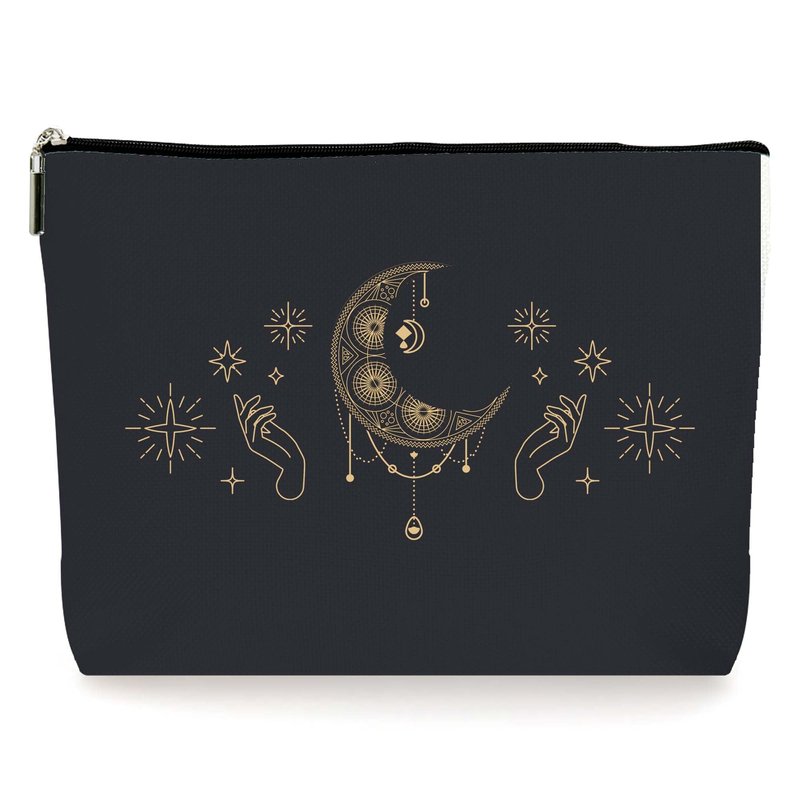 ZYQFN Black Gold Witchy Cosmetic Makeup Bags, Witchy Goth Tarot Halloween Gifts for Women, Witchy Purse Witchy Stuff Witchy Decor Aesthetic, Halloween Zipper Pouch Bag. (094)