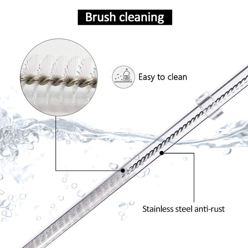 - Simply rinse them out after every use , or use cleaning brush, these brushes are long enough to clean the whole straw and can get rid of any accumulated stain .