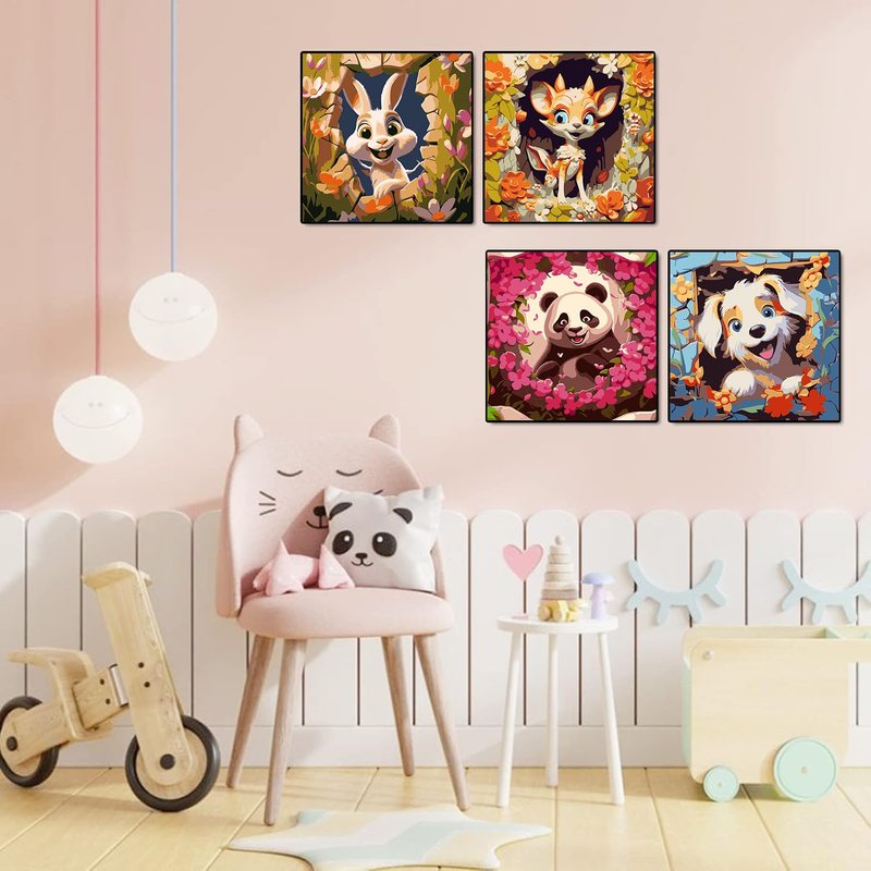 Zythron Painting by Numbers Kits, 4 Pack Paint by Numbers kit for Kids, 8x8 Inch DIY Easy Acrylic Oil Painting Craft Set Beginners for Kids Acrylic Painting kit Kids Paint by Numbers