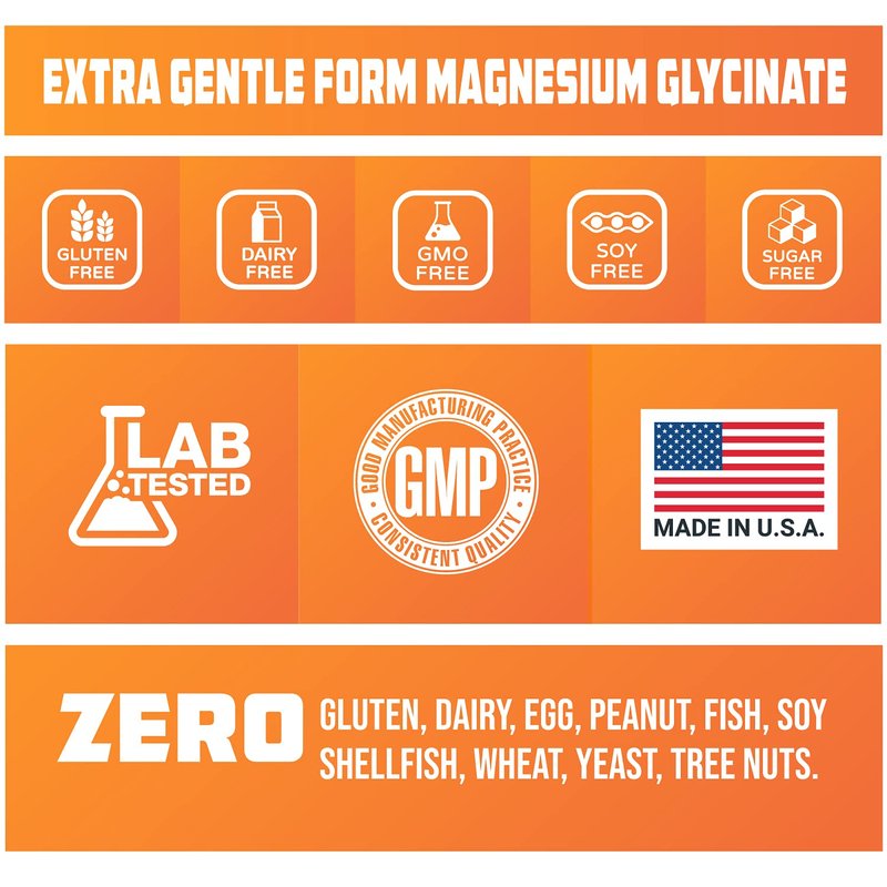 - The Most Gentle Form Magnesium: Glycine, an amino acid is used to chelate with magnesium creating a gentle form magnesium glycinate which is easy to be absorbed in our digestive system. Glycine is also used to enhance magnesium natural calming properties.