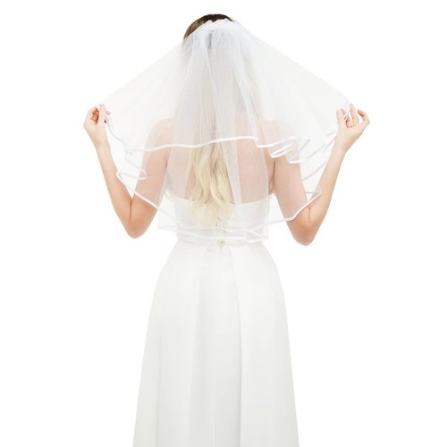 Unsutuo 2 Tiers Bride Wedding Veil Short Fingertip Bridal Tulle Veil with Comb and Cut Edge (White)